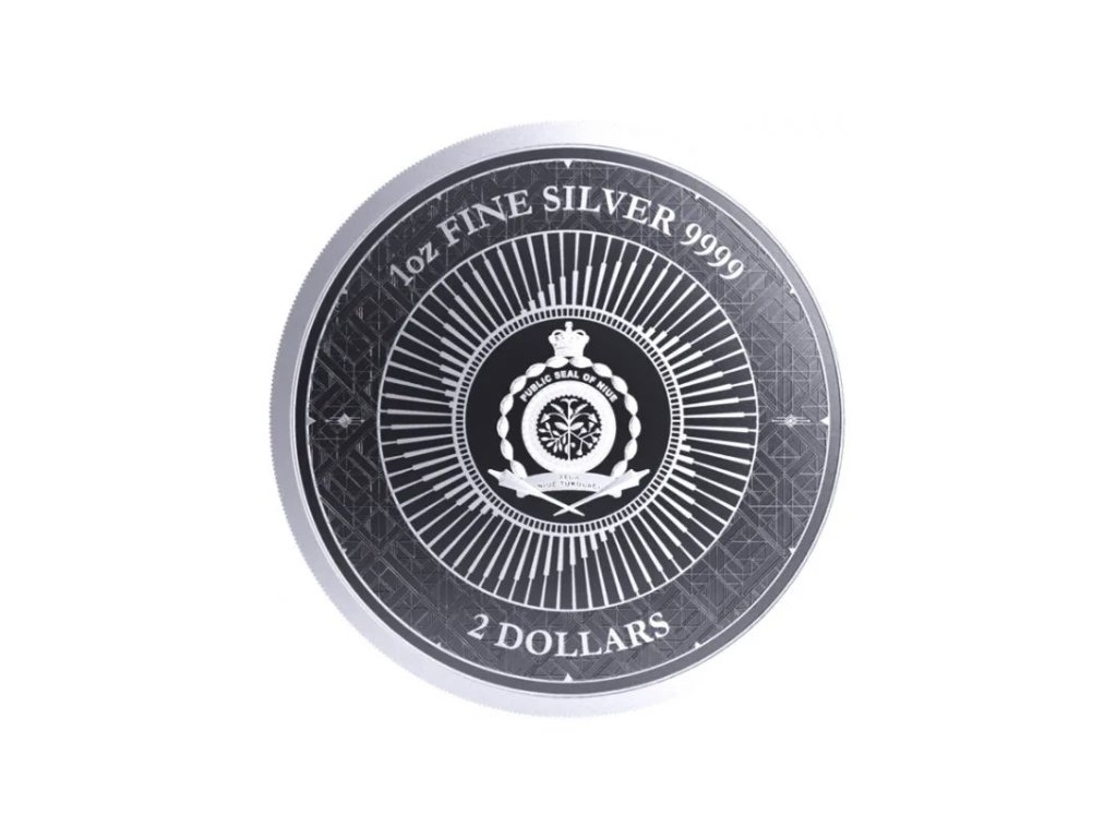 Rubová strana mince je stylizovaná do podoby hodinového ciferníku znázorňujícího hodnotu „za pět minut dvanáct“. Na dvanácté hodině je místo číslovky „12“ chemická značka stříbra „AG“.