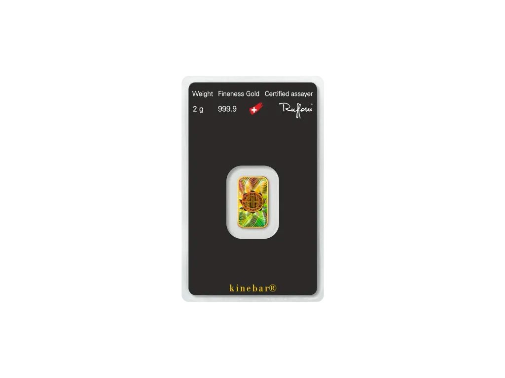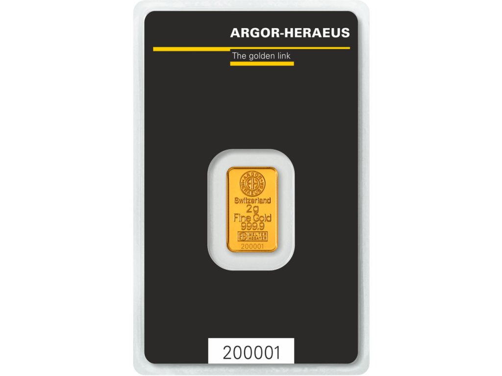 Zlatý slitek 2 g / 999,9 Au (24 kt) – Argor Heraeus, Švýcarsko KINEBAR